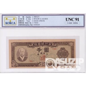 1950년 1000원권(한복)-일본인쇄 / UNC 90등급 - 미사용품
