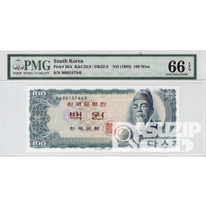 1965년 다 100원권(세종대왕) 밤색지 / PMG 66등급 EPQ