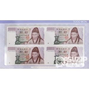 한국은행 나 1000원권(2차) 2002년형 4매 연결권-B급입니다.