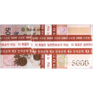 2006년 한국은행에서 발행한 마 5,000원권(5차) 100장 다발입니다.