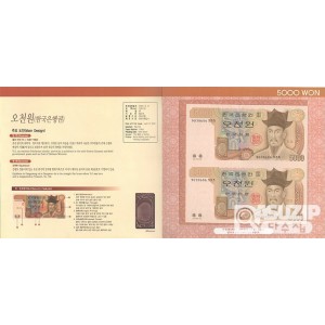 한국은행 4차 5000원권 2002년형 2매 연결권입니다.