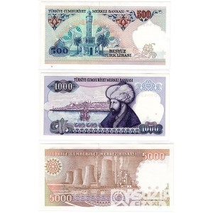 터키 500(3장), 1000(2장), 5000(2장)리라 일괄/ 미사용품