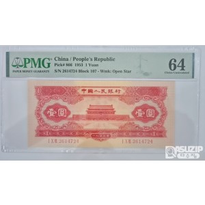 그레이딩 지폐: 1953년 인민은행 2차권 1위안 64등급(홍)