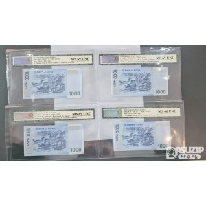 그레이딩 지폐: 빠른번호 네쌍둥이 3차 천원 0000455 NNGC 66 1장 , 67 1장 , 69등급 2장 일괄
