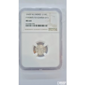 1945P년 동인도 1/10굴덴 은화 NGC 64등급 1.4g 은72% 15mm 중간등급