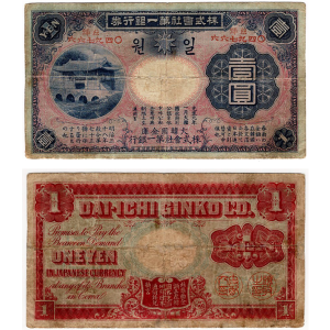 1908년 일본 제일은행 1원-신권(화홍문)입니다. 미품으로 귀한 지폐입니다.