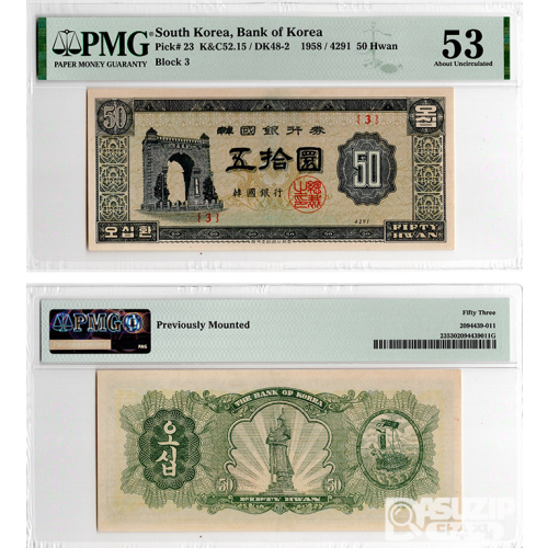 1958년 50환권(독립문) 판번호 3번/ PMG 53