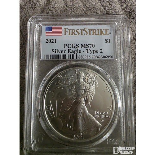 2021년형 아메리칸 실버 이글(American Silver Eagle) 1온스 은화 초판 70등급 초판(First Strike)