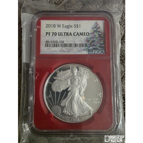 귀한 2018-W 아메리칸 실버 이글 프루프(Proof) 은화 한정판 크리스마스 라벨 NGC 70등급